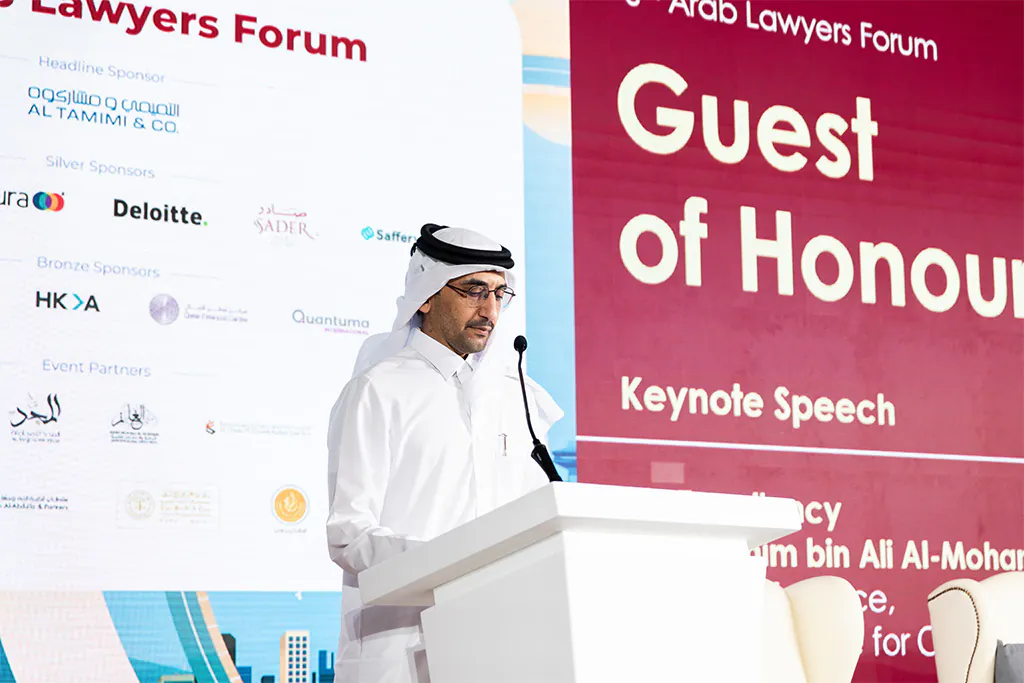 وشهد المنتدى حضور سعادة الوزير السيد إبراهيم بن علي المهندي، إلى جانب عدد كبير من أبرز الكوادر القانونية. وقد مثّل المنتدى مساحة حيوية للتعرف على أحدث أساليب العمل القانوني المعاصر، ومناقشة التحديات والمعوقات التي تواجه القطاع القانوني، واستعراض فرص التطوير والتحسين على مستوى الأداء المؤسسي والتشريعي والممارسة المهنية.